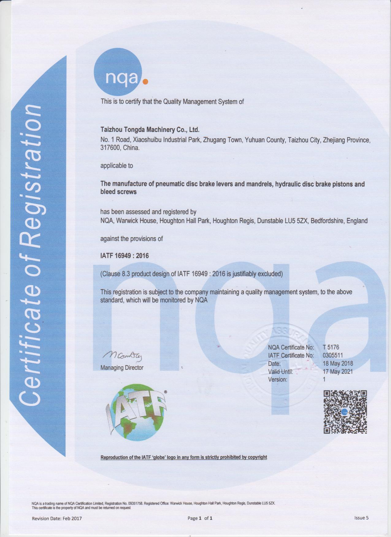 IATF16949:2016證書